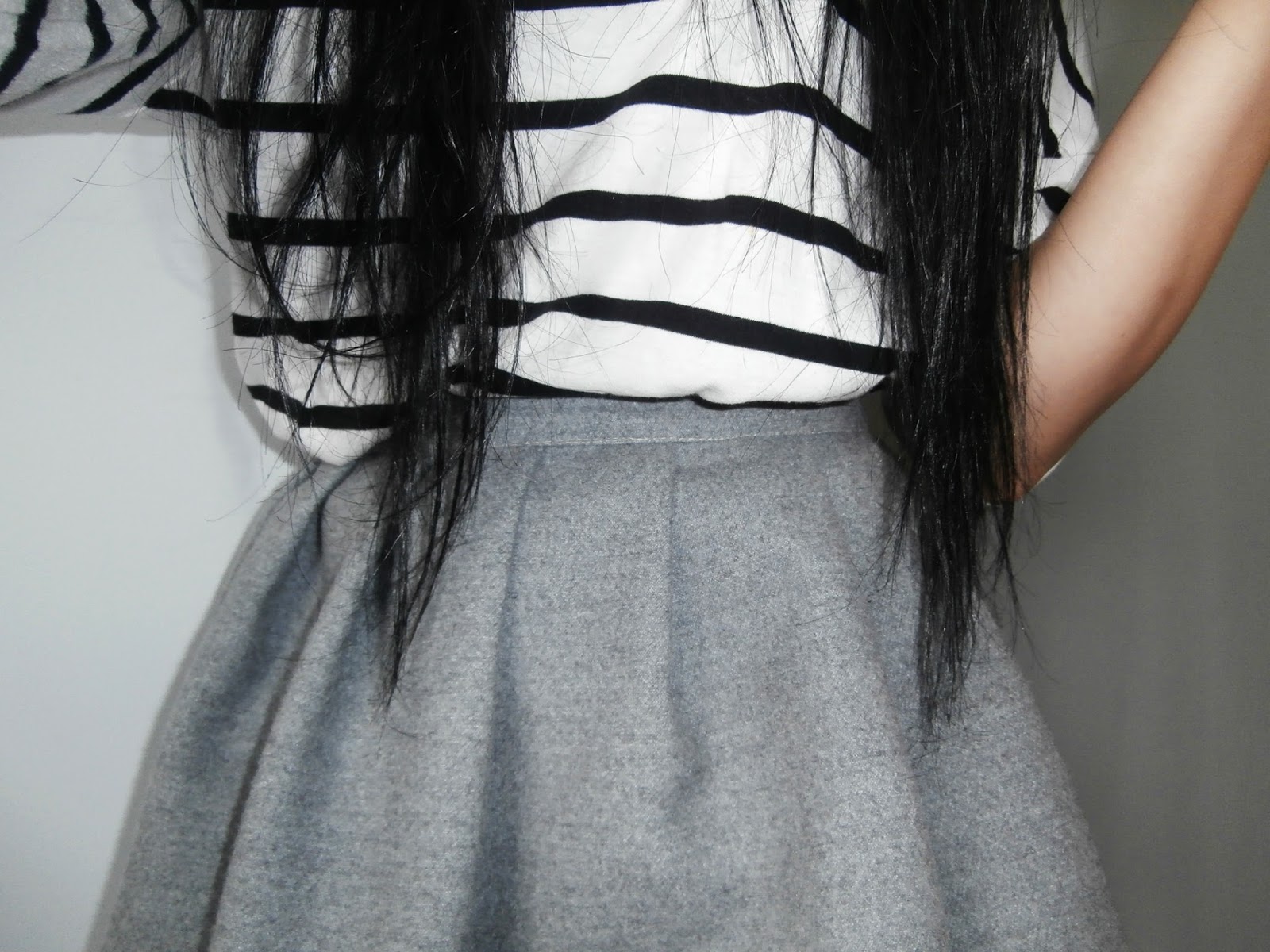To połączenie jest fantastyczne! Bardzo lubię szarości i paski :-)