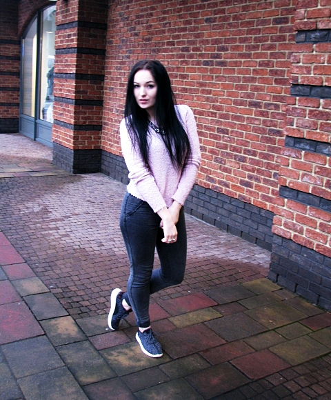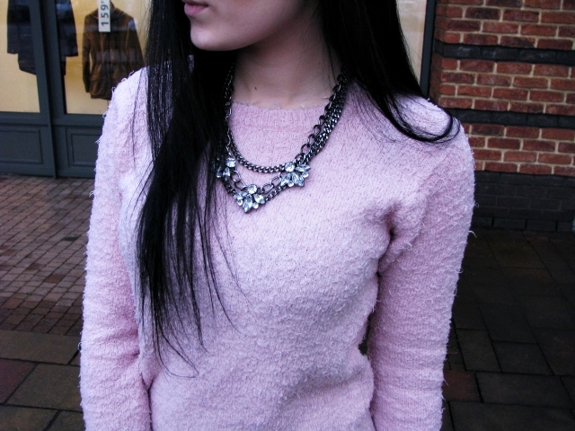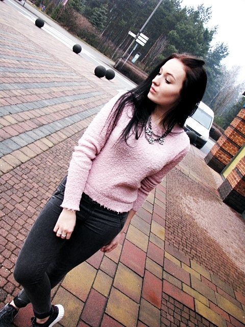 Dzisiaj wersja, którą wybrałam na długa podróż. Chciałam aby było wygodnie stąd wybór obuwia ale zarazem elegancko więc pojawił się różowy sweterek i mój ostatnio ulubiony naszyjnik 🙂