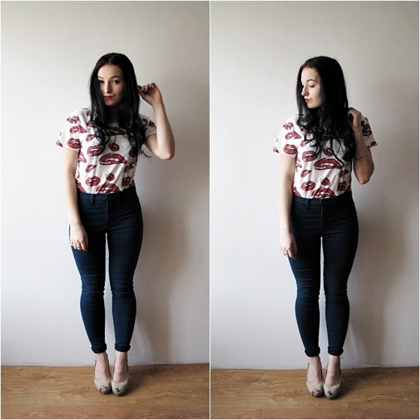 Świetna jest ta bluzka w całuski :) PorcelainDesire