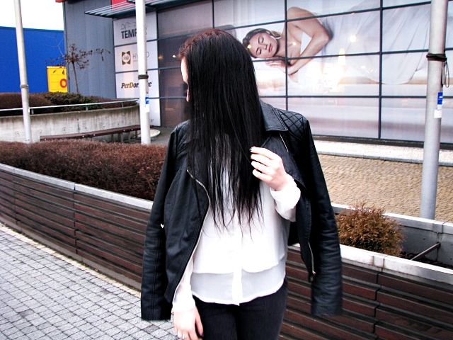 Koszula – BERSHKA | Ramoneska – STRADIVARIUS | Botki- CCC