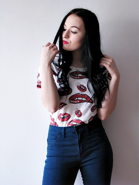 Świetna jest ta bluzka w całuski :) PorcelainDesire